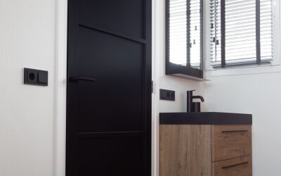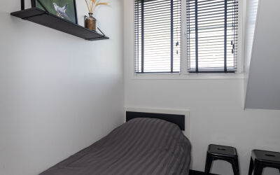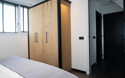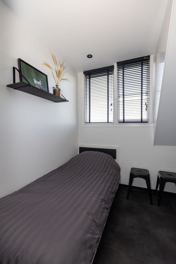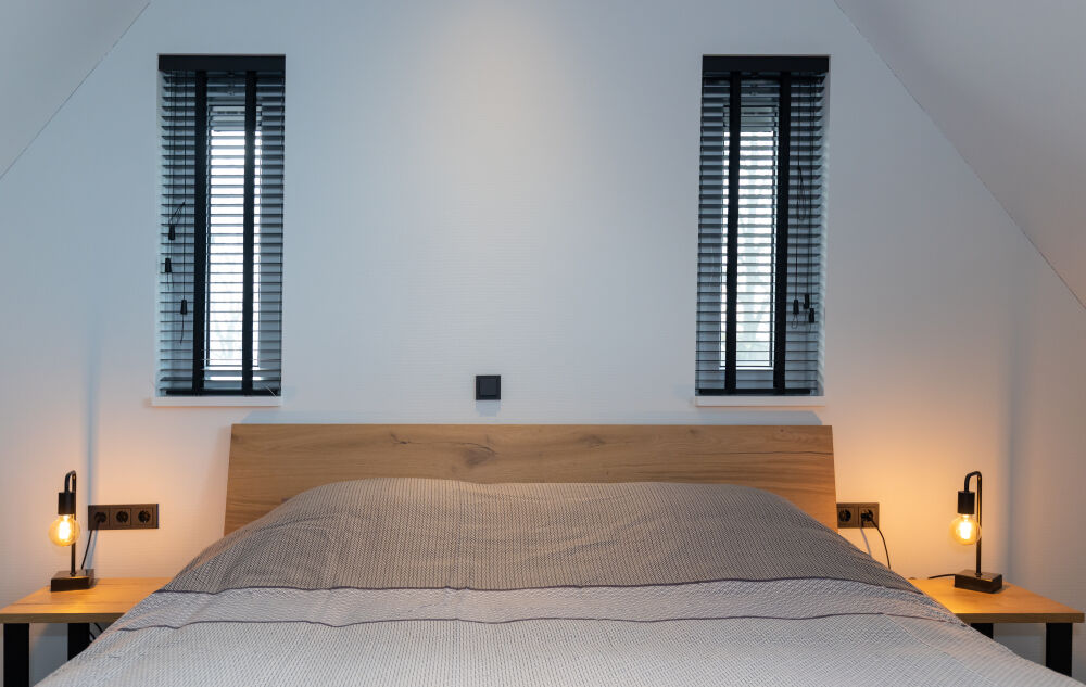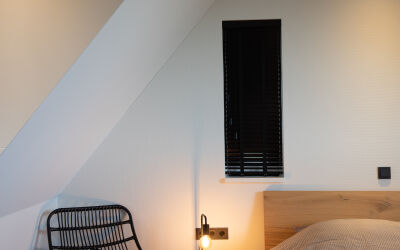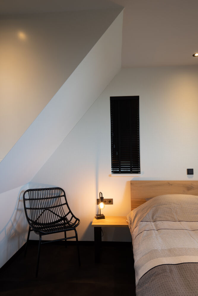 Op de eerste etage vindt u de ruime ouderslaapkamer met kingsize bed voorzien van luxe Auping matrassen en een wastafel met spiegel. De kinderslaapkamer is voorzien van twee eenpersoonsbedden met luxe Auping matrassen van 90 x 200 cm. Ook is de eerste etage voorzien van een tweede toilet.